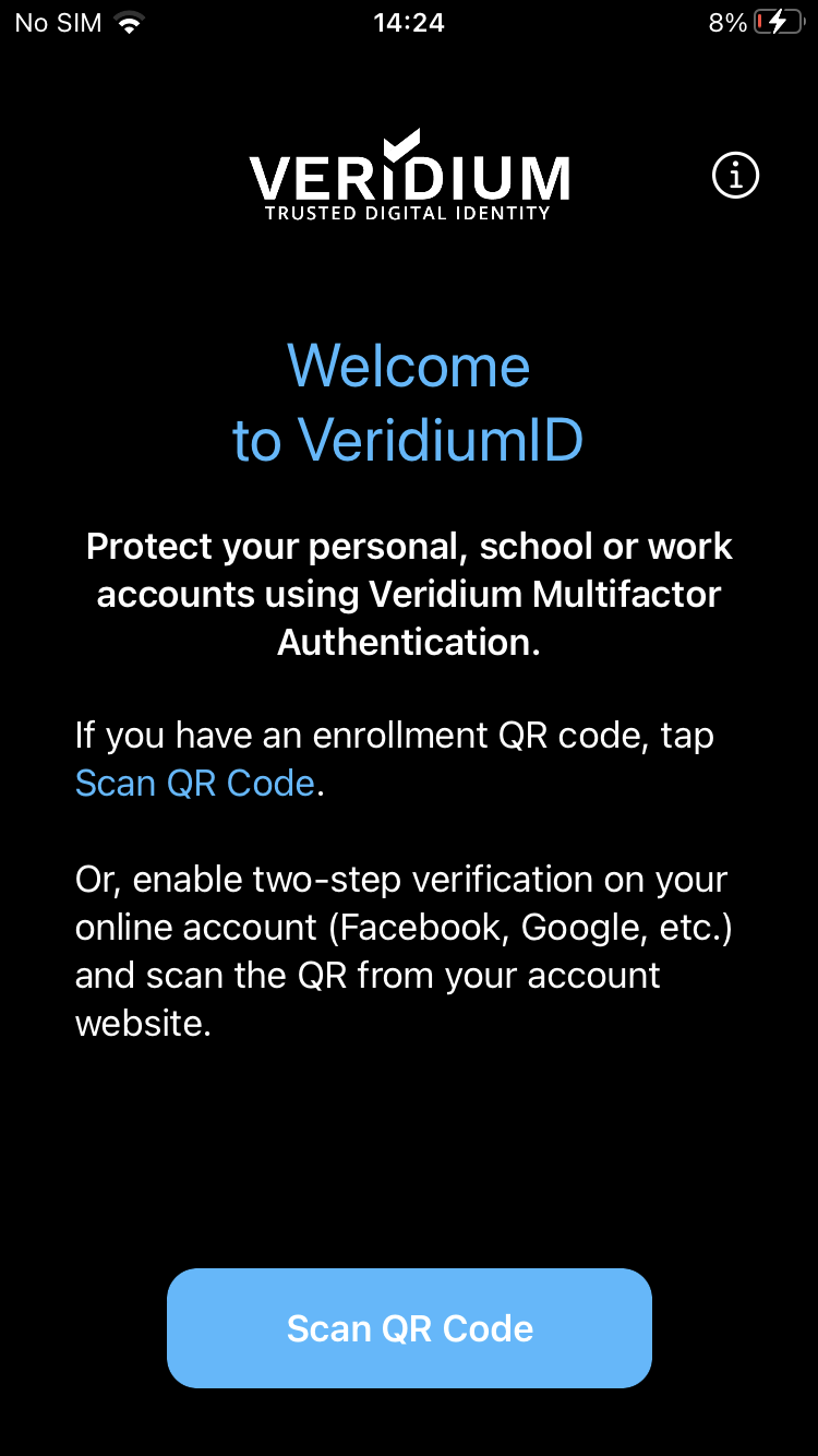, and scan the QR from VeridiumID Self-enrollment page using the.