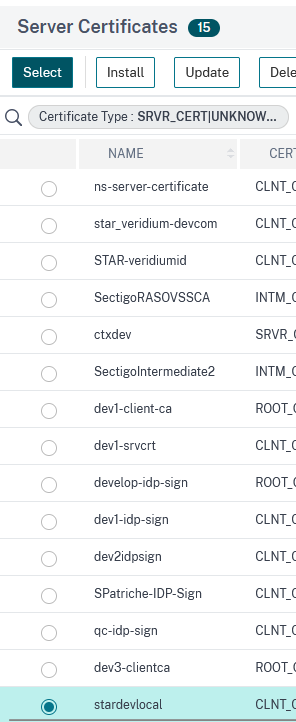 Choose the certificate you’ve used in the creation of Load balancing virtual server and then click on Select: