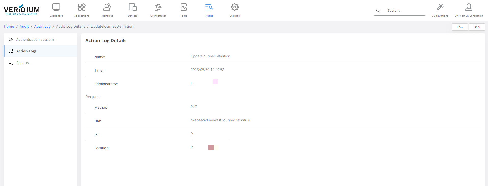 Action logs represents all actions in VeridiumID configuration done via the Veridium Manager.