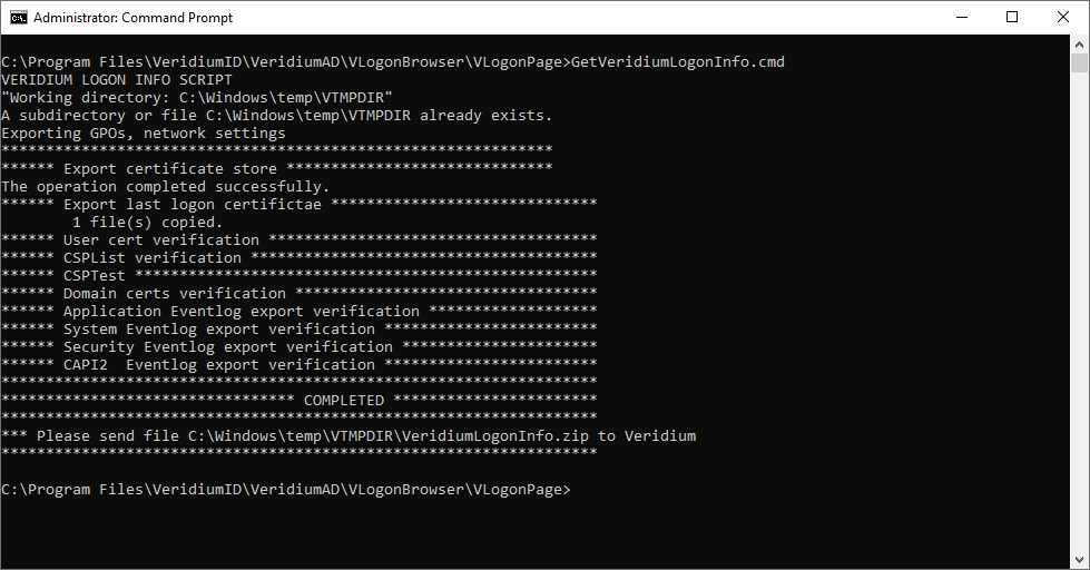 Final package os on: C:\Windows\Temp\VTMPDIR\VeridiumLogonInfo.zip
