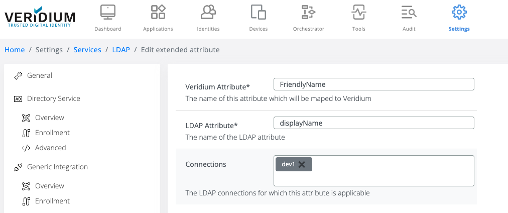 First, Extended attributes need to be defined by accessing Settings → Services → LDAP → Manage extended attributes.