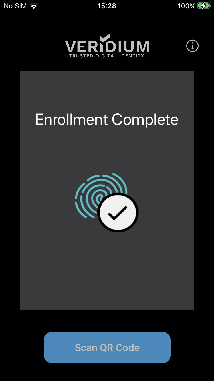 , and scan the QR from VeridiumID Self-enrollment page using the.