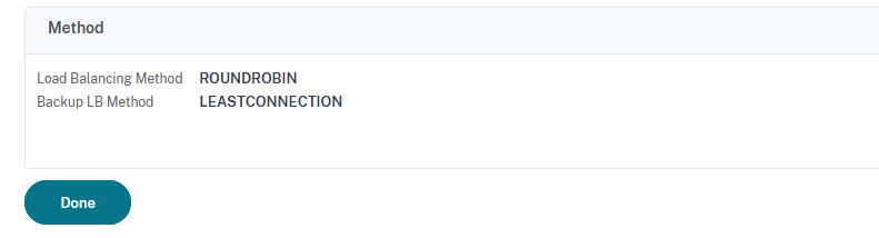 Select ROUNDROBIN as load balancing method and LEASTCONNECTION as backup load balancing method, then click on OK: