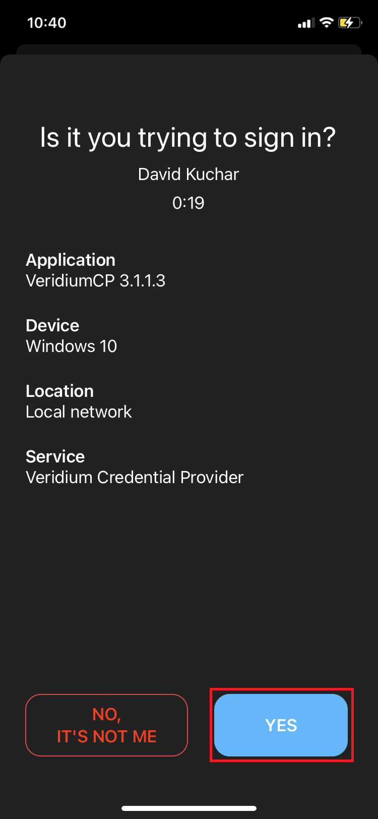 Confirm login in mobile App by pressing "YES" button.