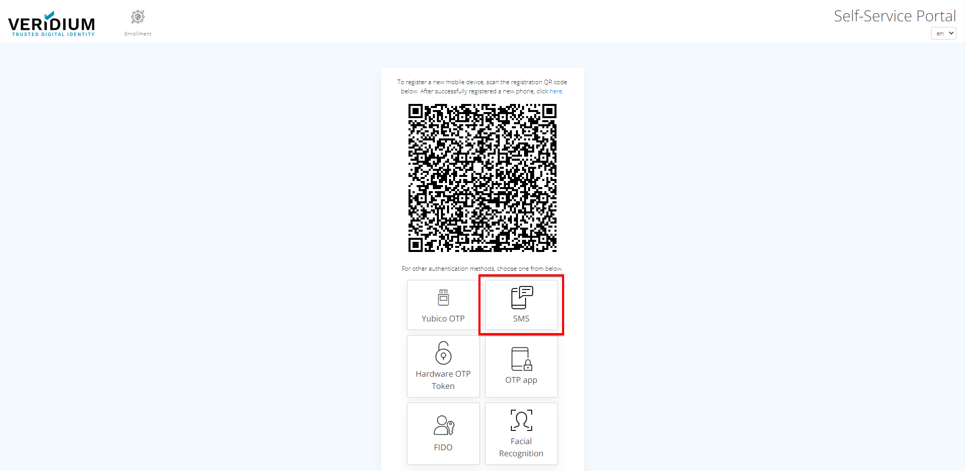 Go to VeridiumID Self-enrollment and click on "SMS".