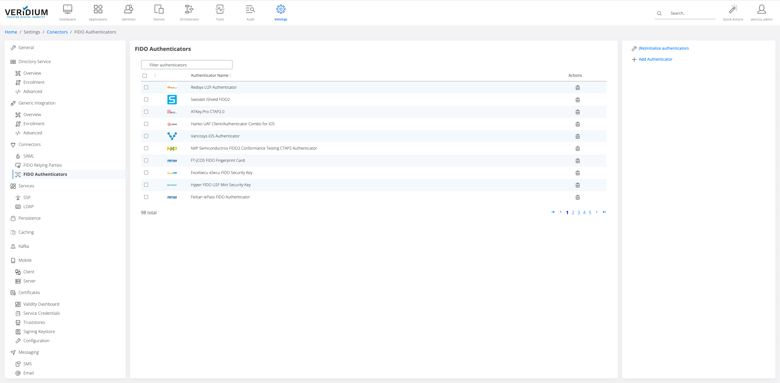 Upon deployment the FIDO server must be configured in VeridiumID Server using the Admin Dashboard