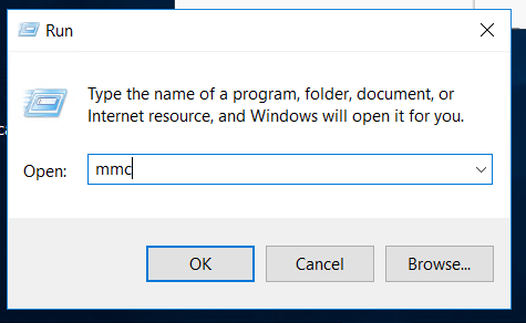 In the following window type mmc and hit Enter: