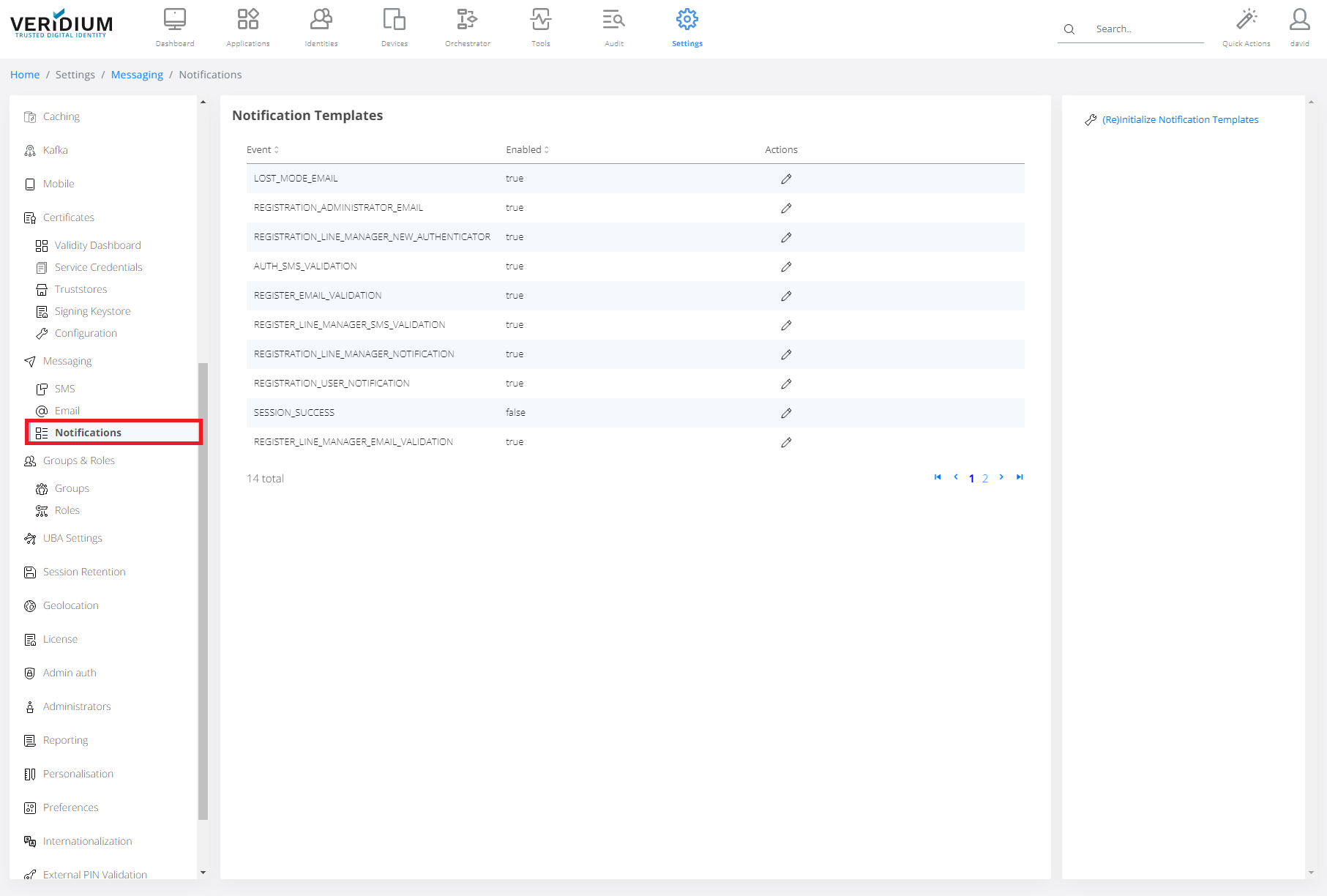 In Veridium Manager, click Settings on top navigation.