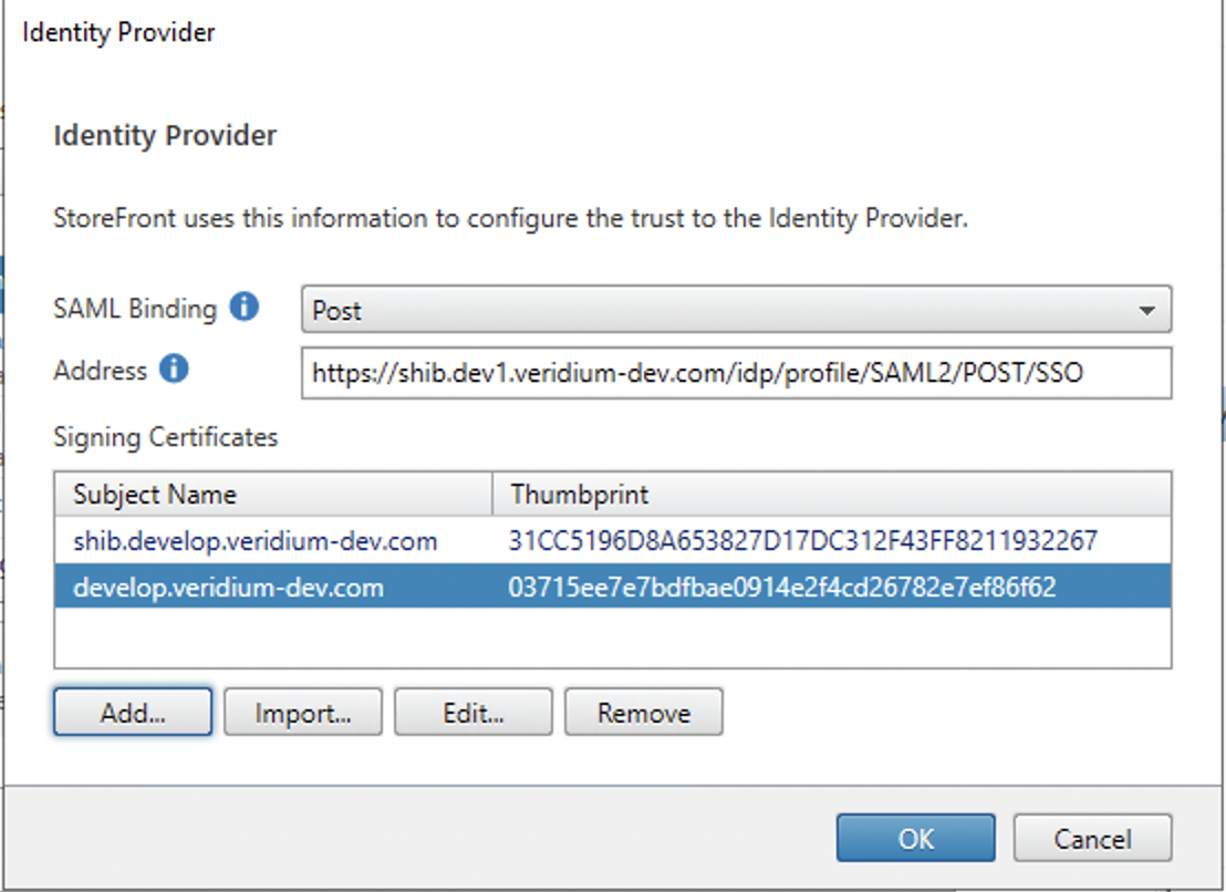 Edit Identity Provider of the Citrix StoreFront